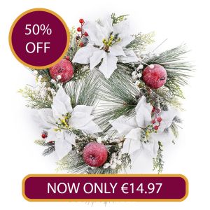 50cm White Poinsettia Wreath with Pink ApplesRegular Price €29.95 Special Price €14.97 -